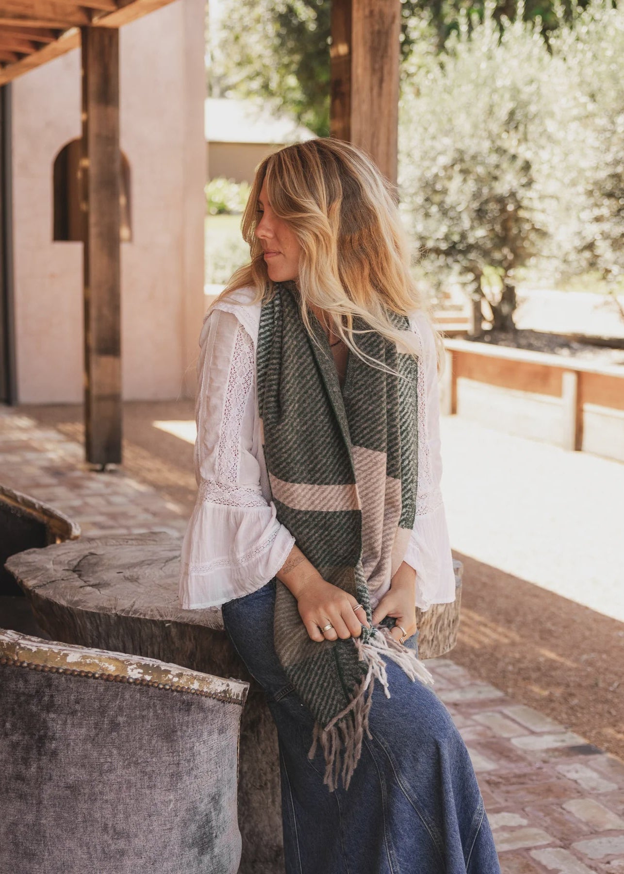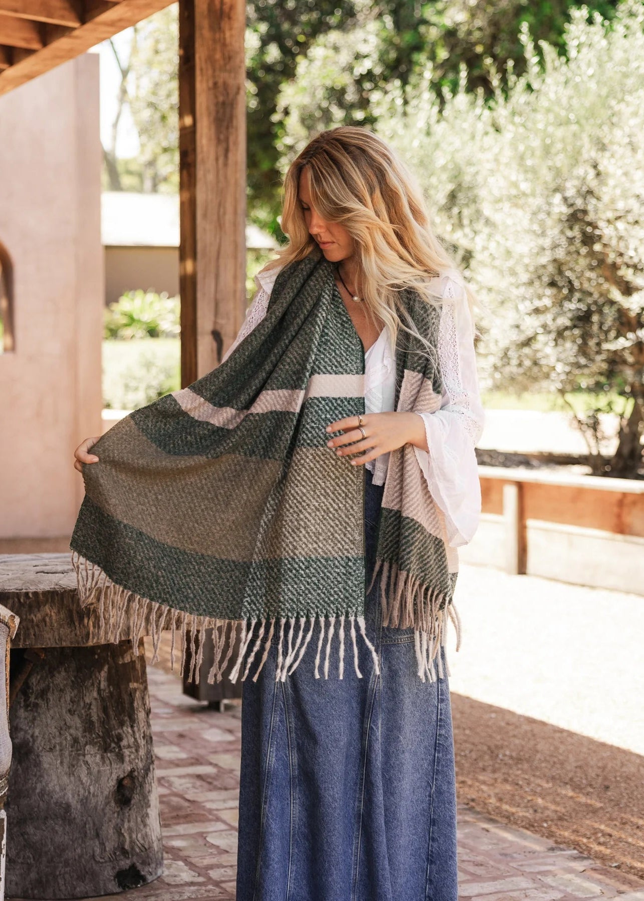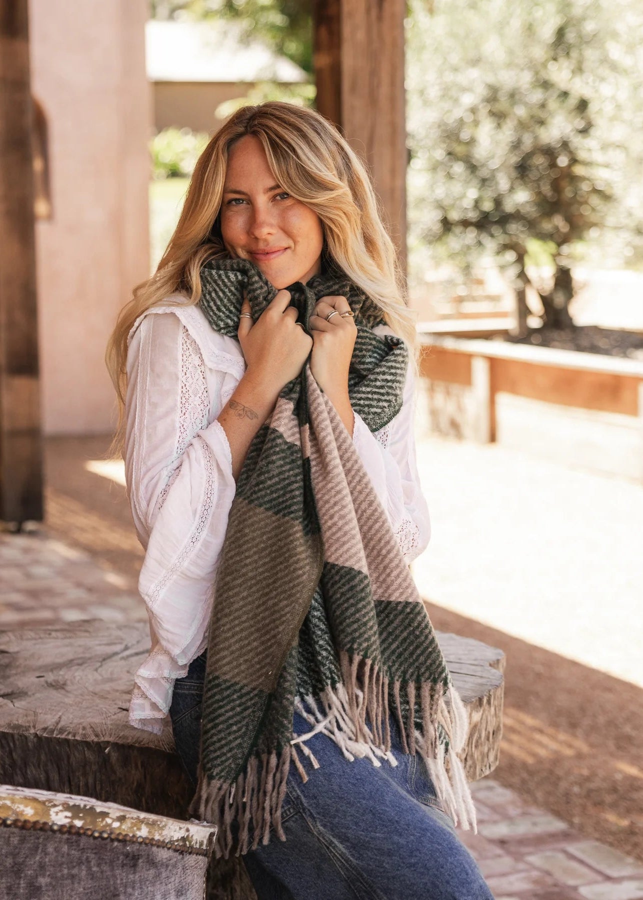The Louenhide Cambridge Forest Green Scarf effortlessly combines style and warmth to elevate your winter wardrobe. With its generous size and cool-toned colourways, this soft colour block scarf offers endless styling possibilities. Effortlessly drape it over your shoulders for a classic look or loop it for a snug feel. The Cambridge is the perfect cosy winter accessory.