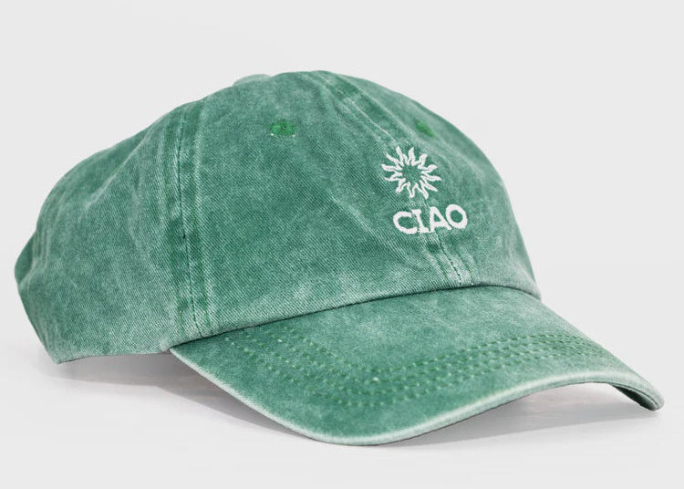 Sport the cute AF Ciao dad cap in Emerald. One size fits all.