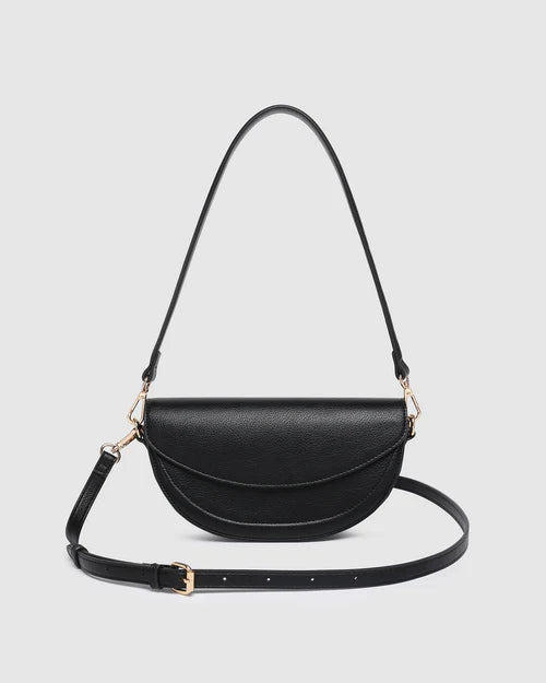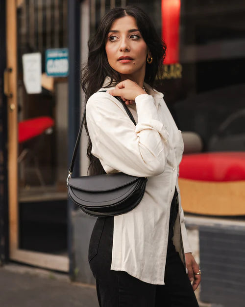 The Louenhide Cindy Black Shoulder Bag is as practical as it is refined. From the subtle details to the compact crescent silhouette adorned with light gold hardware, this small shoulder bag strikes the perfect balance between timeless and modern design. Its sleek and slim profile effortlessly elevates any wardrobe, whether you’re stepping out for brunch or heading into the night. The Cindy Black crescent bag may be understated, but the unique silhouette leaves a lasting impression.