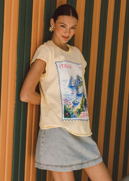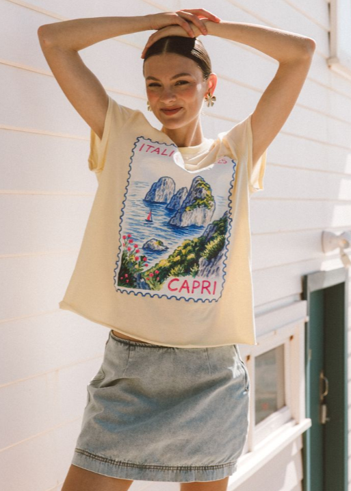 Our Favourite tee is back with a gorgeous Italia Capri Postcard Print