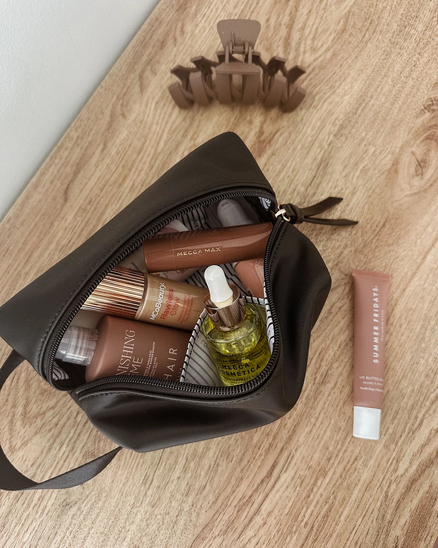 The Xena Black Cosmetic Case blends practicality with understated style, crafted as a versatile toiletry bag with handle for daily use or travel. Her sleek satin finish and structured silhouette create a polished, modern look, while an interior slip pocket keeps your favourite essentials neatly organised. A secure zip closure ensures everything stays in place wherever the day takes you. Effortless to use and elegant to carry, Xena Black is a reliable companion for both travel and everyday routines.