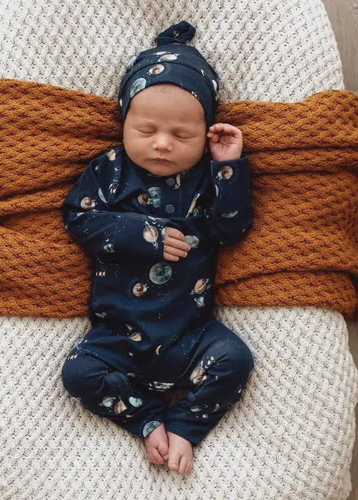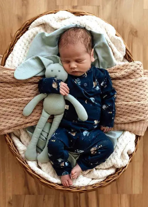 Our Organic Growsuits are an all-in-one onesie that is both functional and beautiful. Soft and stretchy, our growsuits are an easy-care, fuss-free option that’s easy to wear thanks to their modern, fitted style. Suitable for loungewear, daywear, birth announcement photos and make great baby gifts. All Snuggle Hunny clothing is made with GOTS Certified Organic Cotton CU 1182228. Our Growsuit Design This design includes a long, hidden zipper from ankle to ankle, inside the leg. This means bub’s body can stay warm while their nappy is being changed, with simple, easy access. It also means these growsuits are as easy as a T Shirt to put on bub!