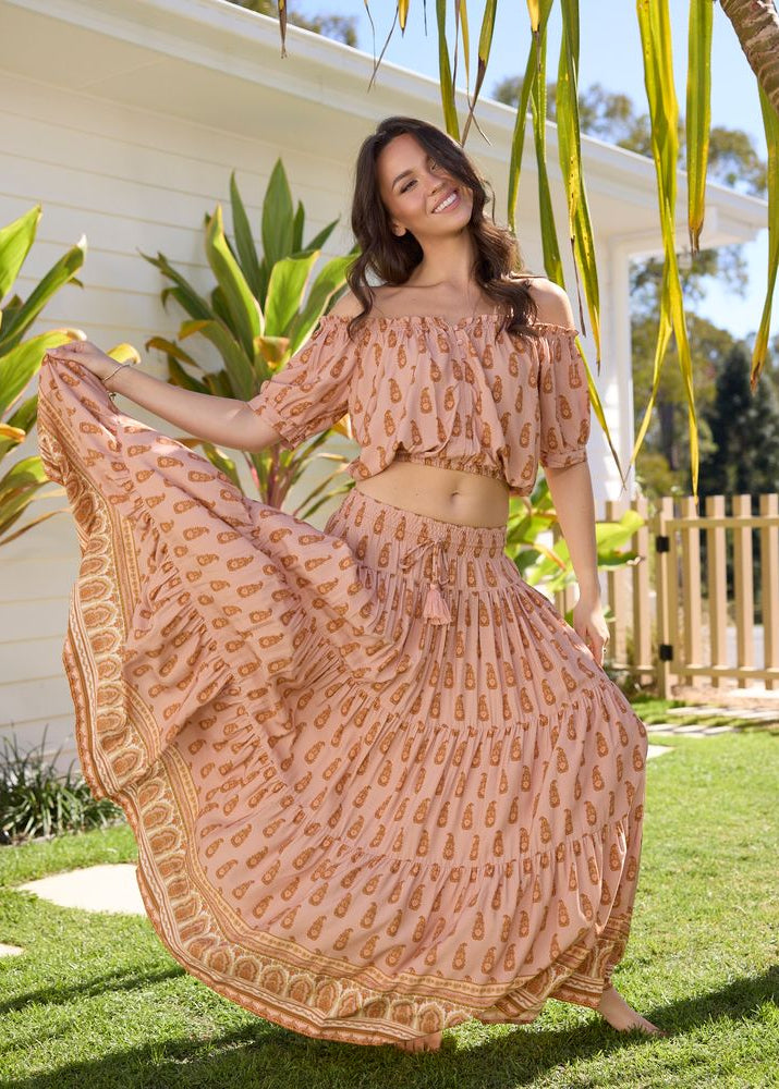 The perfect boho top in our Rosewood print! Mix & match with denim or as a matching skirt set.Lightweight and comfortable, it’s designed to move with you, making it ideal for everything from brunch dates to sunset strolls. Add a splash of bohemian charm and let your style blossom with this versatile, must-have piece.