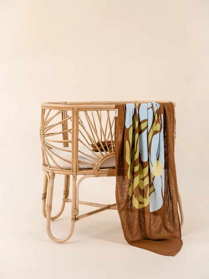 The Kiin Organic Muslin Swaddle is a cornerstone of our collection and one of the very first products we ever released. This beloved swaddle sparked our brand’s growth and continues to be a customer favourite, known for its exceptional softness, versatility, and timeless design. Now available in the limited edition Fleur print - a modern, abstract botanical design digitally hand-drawn exclusively for Kiin. With fluid lines and soft petal forms, Fleur brings a playful yet calming touch to your baby’s essentials. * Available in two gentle colourways: Umber: pastel blue petals with buttercup centres and willow green stems, set against a rich umber ground. * Warm Oat: ivory petals with buttercup centres and willow green stems, resting on a warm oat background. Both variations are beautifully gender neutral and inspired by warm, playful spring tones, making them a joyful yet timeless keepsake for every baby. Crafted from a premium blend of organic cotton and bamboo, the lightweight muslin fabric is breathable, buttery-soft, and gentle on delicate newborn skin. Swaddling mimics the secure feeling of the womb, helping babies feel calm, warm, and comforted. It supports restful sleep and eases the transition into the world. Designed for all seasons, this swaddle is a beautiful everyday essential - whether you’re wrapping your baby, laying it down for tummy time, or simply keeping it close for comfort and connection. With its modern, abstract botanical artwork, the Fleur swaddle is also beautiful enough to be seen as a statement piece. Drape it over a nursing chair, style it on the lounge, or keep it on display - this is one essential you’ll love to show off, not tuck away.